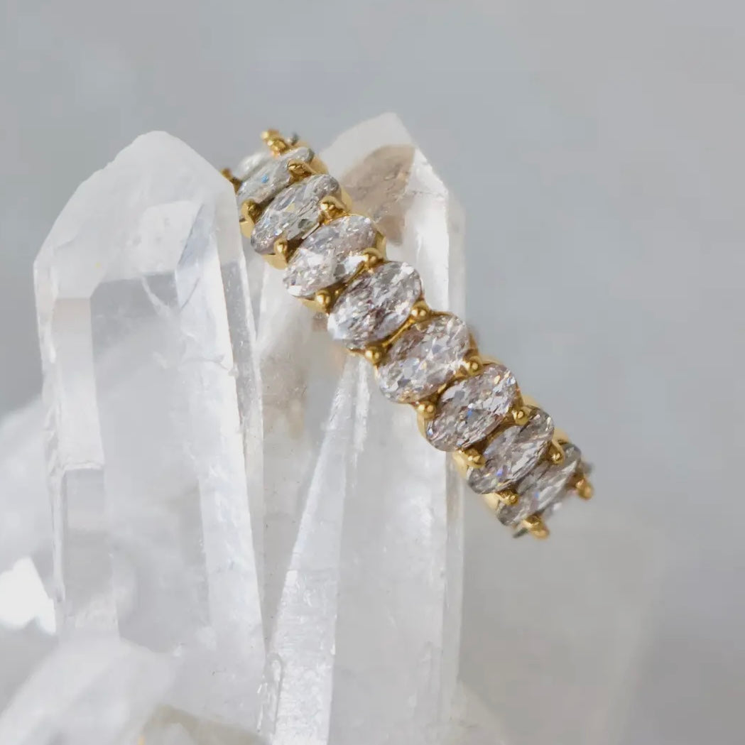 Timeless and radiant, this zircon eternity band ring is a symbol of everlasting elegance. Featuring a continuous circle of sparkling zircon stones, it exudes brilliance from every angle. Perfect for stacking or wearing solo, this exquisite piece adds a touch of sophistication to any look.
