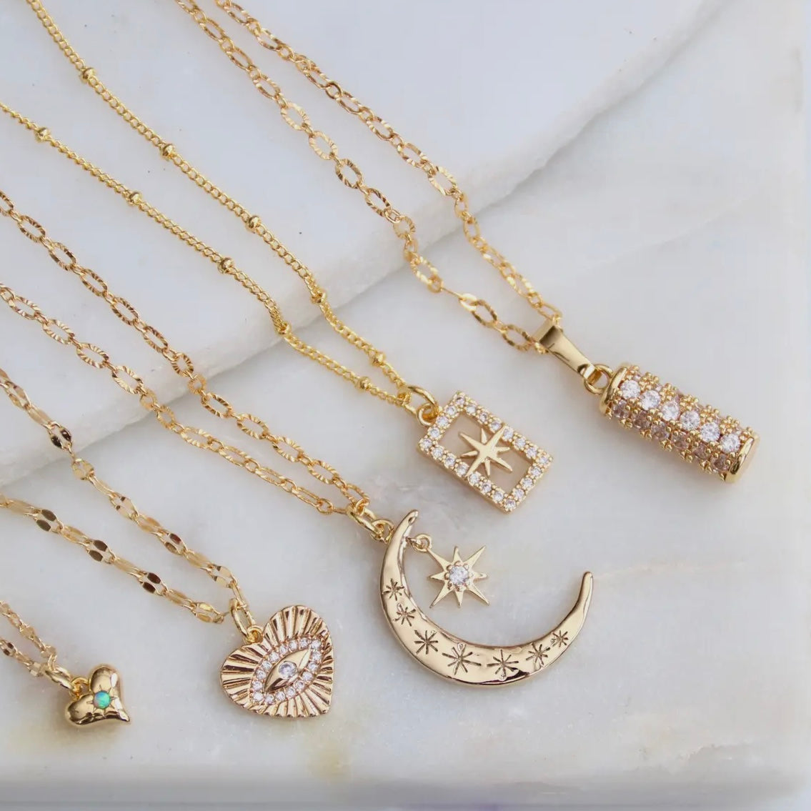 - Chain Length: 15.5" + 2.25" 18K gold plated chain
