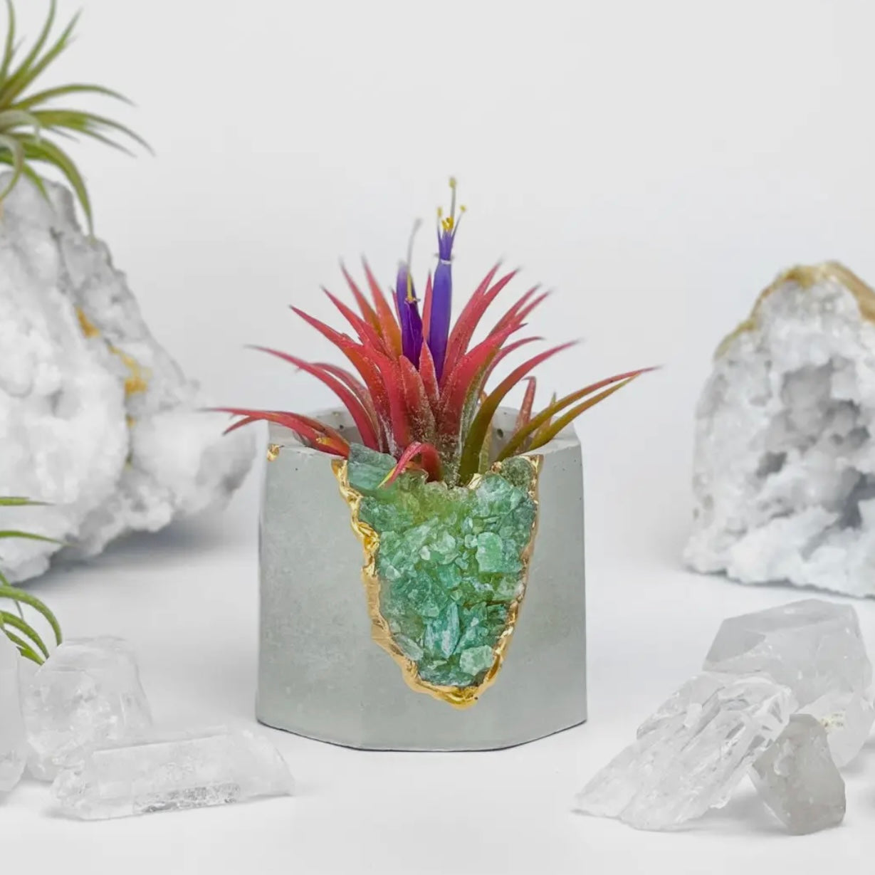 Natural crystals and concrete are formed together to create a unique and one-of-a-kind housewarming gift, home accent, and home for your small plants. Our gorgeous crystals planters can be used in a variety of ways from air plant holder, succulent pot, candle holder, jewelry pot to cute cup for small items.