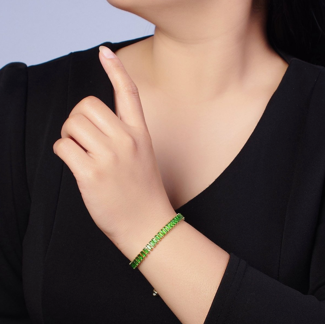 Elevate your everyday shine with this navy blue baguette tennis bracelet, crafted in brass with 14K gold filling. Each deep navy CZ stone is cut to catch the light, adding a modern, sophisticated sparkle.