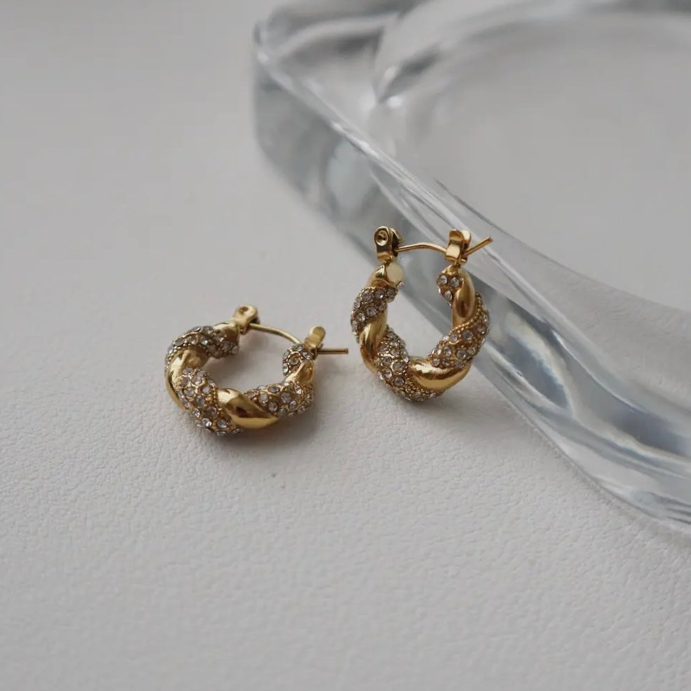 Small twisted hoop earrings symbolize elegance and flow, representing the twists and turns of lifes journey. Their delicate design adds a touch of timeless charm, making them a versatile accessory that embodies balance, resilience, and effortless style.